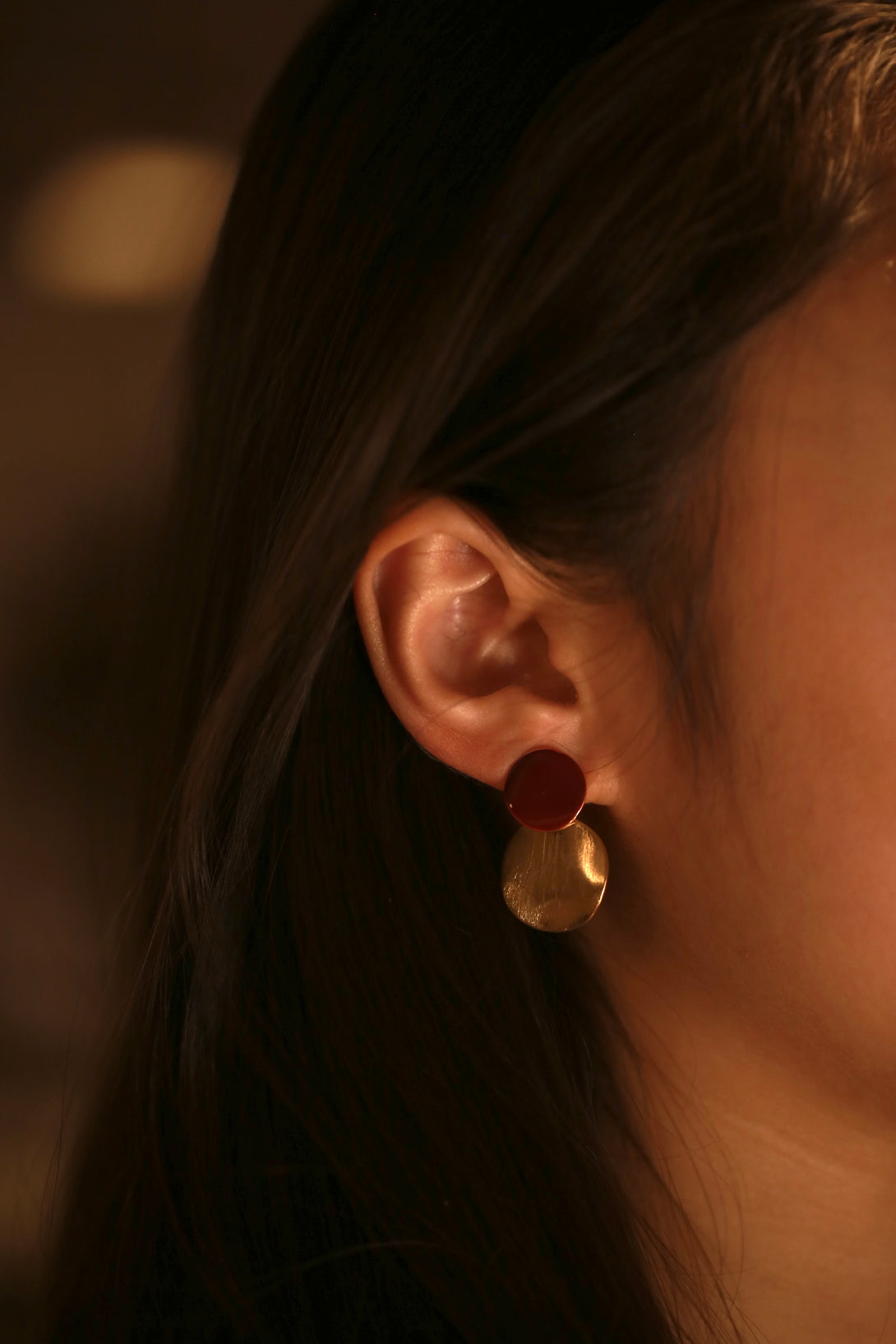 Two tones, two textures—brush gold meets deep wine red. Hollow Twin brings balance through contrast, modern yet warm.