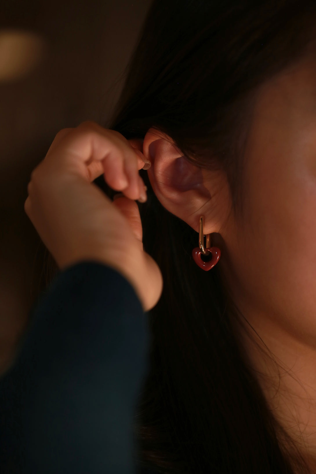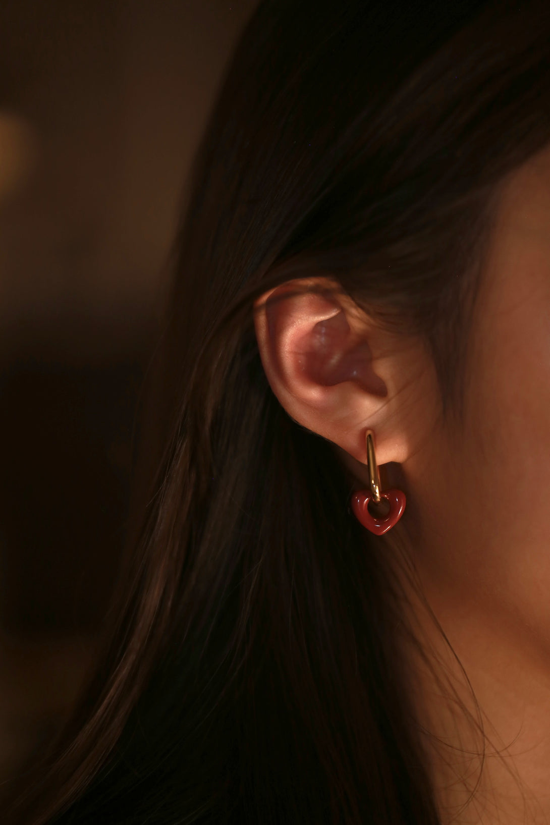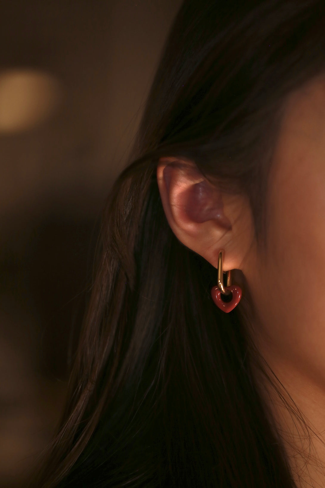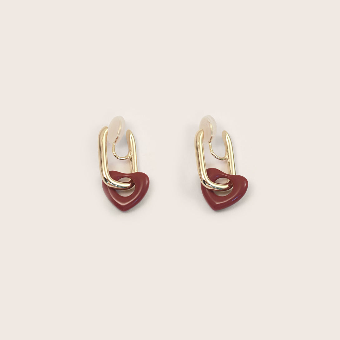 Playful elegance meets modern structure. The sculpted heart detail contrasts beautifully with glossy metal links for a bold yet romantic clip-on design that moves seamlessly from casual to elevated.