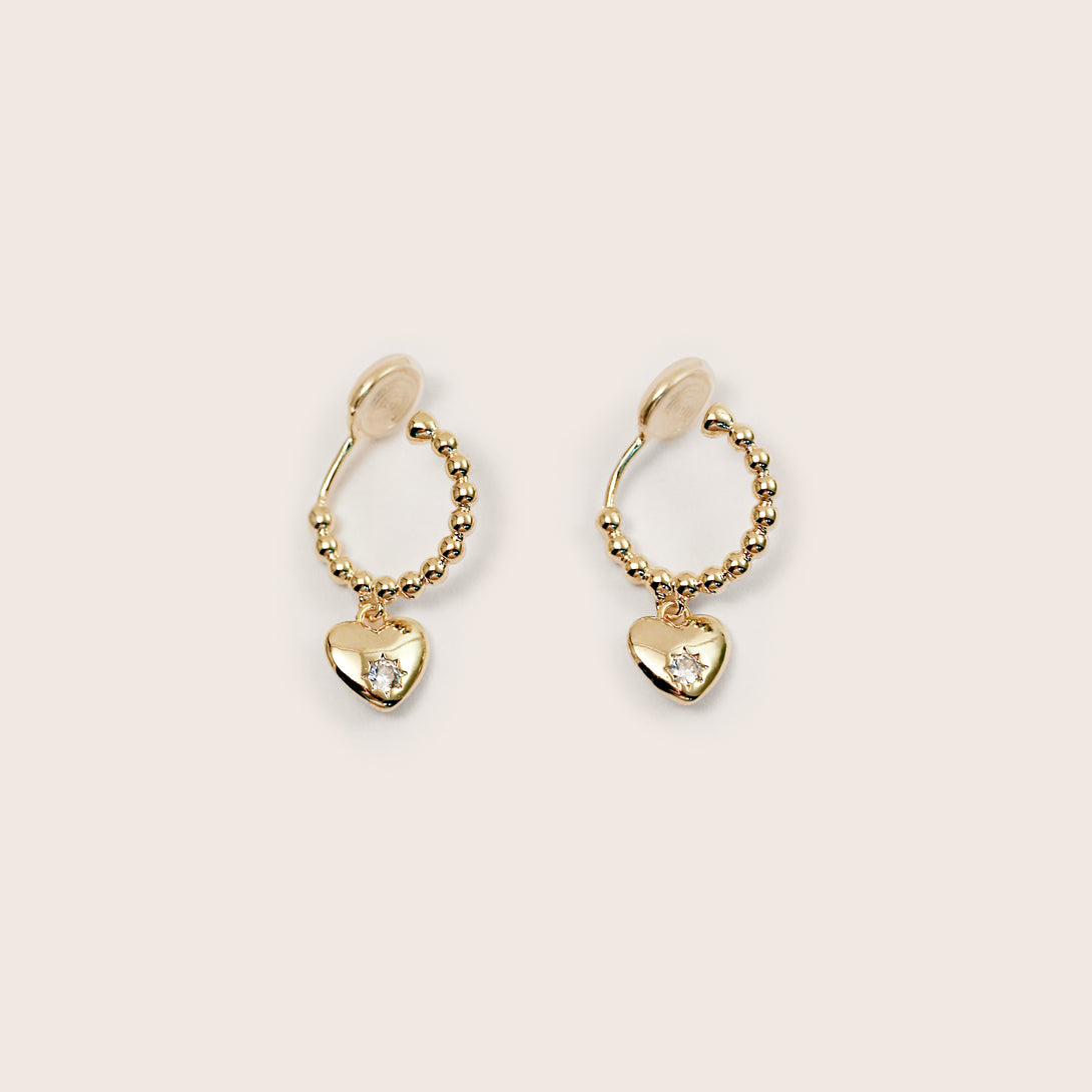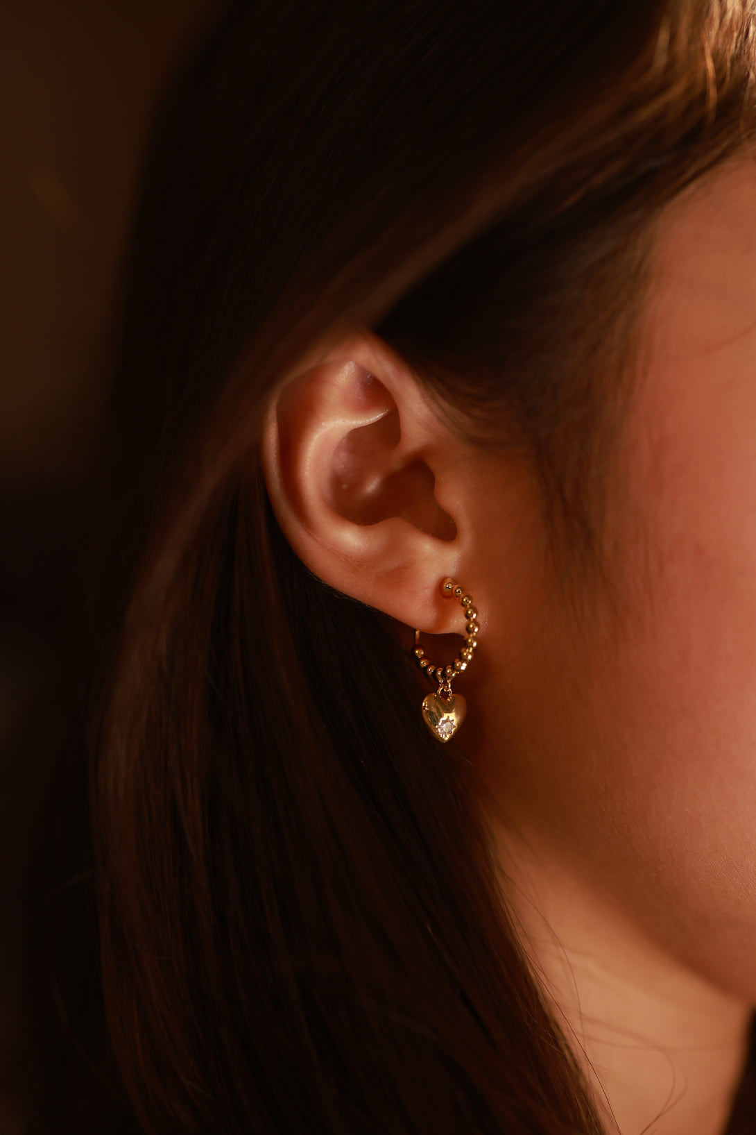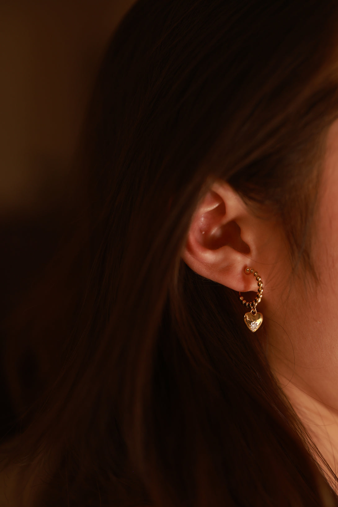 A small golden heart, suspended like a quiet wish. Stella Heart Drops move gently with every step—soft sparkle, unspoken warmth.